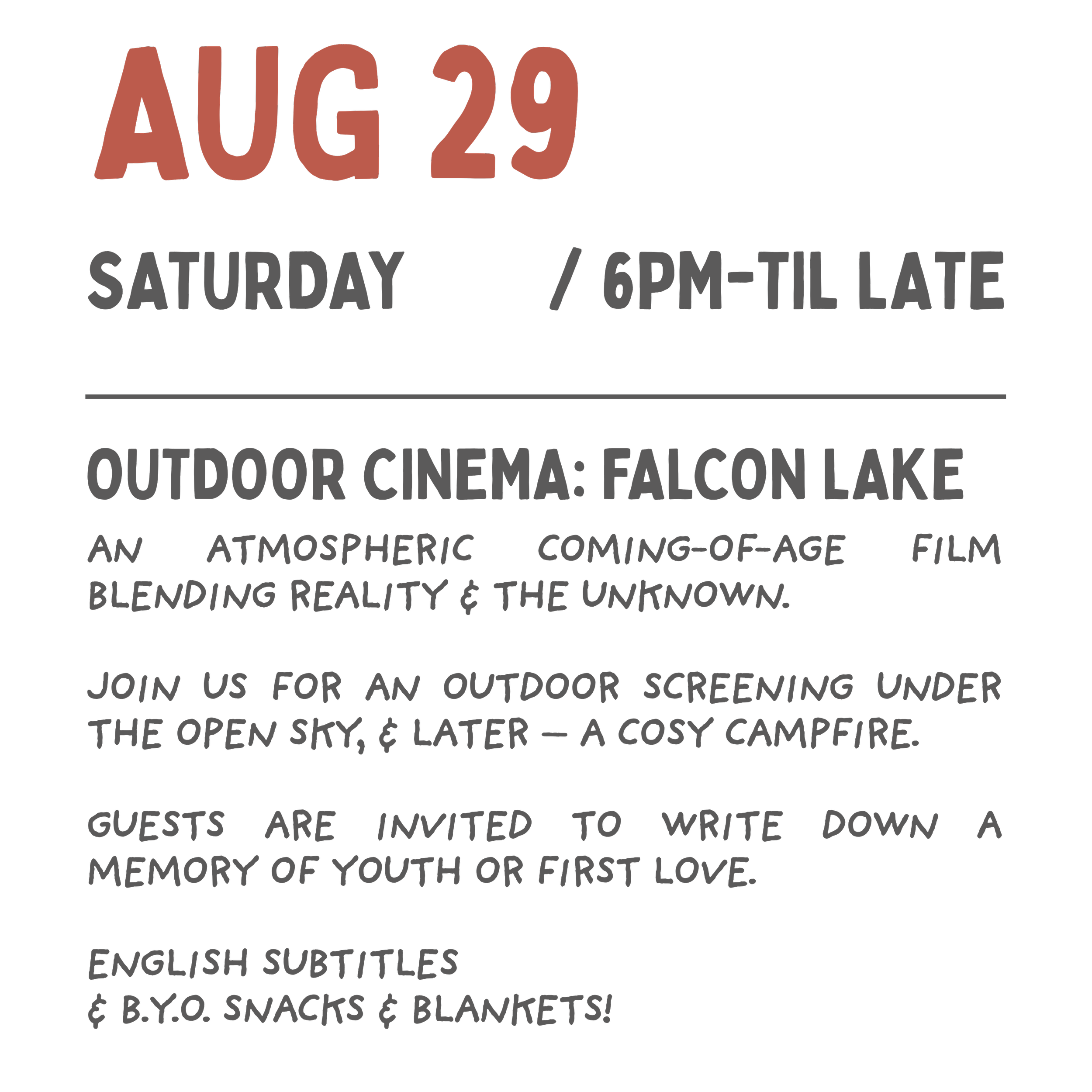 English subtitles & B.Y.O. snacks & blankets!